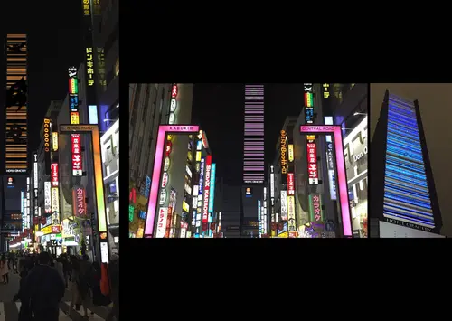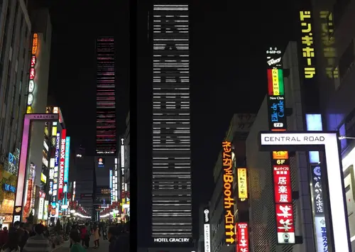 作品名新宿東宝ビル+街路灯演出照明