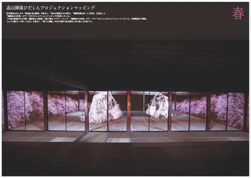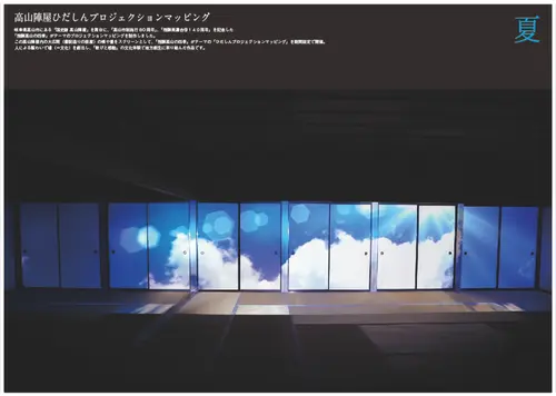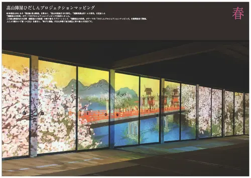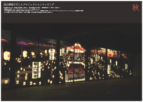 この高山陣屋内の大広間(書院造りの部屋)の襖や畳をスクリーンとして、「飛騨高山の四季」がテーマの「ひだしんプロジェクションマッピング」を期間限定で開催。