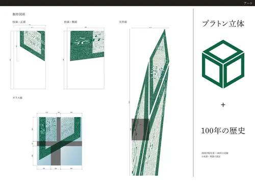 受賞コメント「Book Tree」西南の知の樹=西南学院大学図書館を創るため、3つの知が集約しました。 1.建築デザイン ・キャンパス景観との調和した外壁は、積層した知識を表現した「レンガトレサリー」が特徴の外観デザインです。 ・内観デザインは、中心に知の幹を表現した「ブックツリー」、周囲は成長する枝葉としての「ラーニングリーフ」とした空間構成です。 2.ライブラリーアート 3者3様のアートが知的刺激と想像力の解放を求めて集いました。 3.サインデザイン 図書館の命である「文字」を核に、知性とアート性が同居した表現手法で、建物との調和と伝統の継承を目指しました。