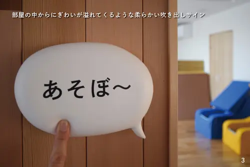 子どもが楽しく遊ぶ声が聞こえてきそうな「吹き出しサイン」