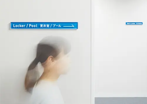 受賞コメント水泳競技のトップ選手専用のプールを備えたトレーニング施設、およびレジデンスのサイン。水泳施設であることを表現するため、施設全体のサインを透明感のある素材で展開し、それらを立体的に表現することで空間の象徴としている。アクティブな色彩と、シャープなストライプ形状は、練習に励む選手達のエネルギーやスピード感に寄り添い、案内や誘導機能も備えている。