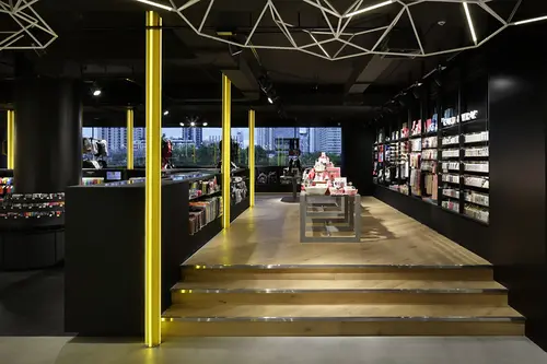 受賞コメント天井に予め用意された造作に、相乗効果を生むように柱を貫通した。柱を囲うように什器配列して部屋を点在させ、それを「間(ま)」と称した。什器に間の概念を持たせたことで部屋と通路が浮かび上がり、路地のような「楽しく迷える売場」となる。ロフトが日本ブランドである主張を、日本特有の「間・路地」や「格子」から漏れる光の風景に込めた。ロフトのアイデンティティを保ちながらも日本を意識したデザインの再定義である。