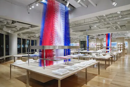 受賞コメント「今治タオル本店」のトータルプロデュースとストアを設計。「今治タオルファクトリー」をコンセプトに掲げ、タオル織機に使われる通じ糸を用いて作られた象徴的な陳列什器や、カウンターバックのアートワークが設置され、「産地今治」をより魅力的に発信する場所として生まれ変わりました。
