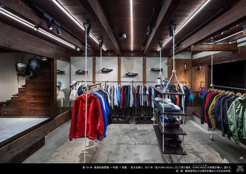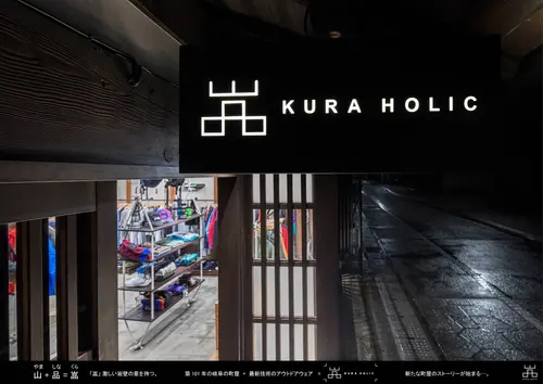 受賞コメント築101年の岐阜の町屋に世界中の最新技術が盛り込まれた機能的アウトドアウェアが並び、時代もカルチャーもミクスチャーな空間の「KURA HOLIC」。 店名の「嵓くら」は「激しい岩壁」の意味を持ち登山家の中ではよく目にする漢字である。また築101年の町屋の奥には白壁の「蔵」が鎮座していることから店名を「KURA」と設定している。「山やま」と「品しな」からも連想される通りアウトドアウェアアイテムのショップとして新しい歴史が始まった。