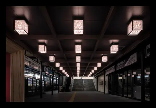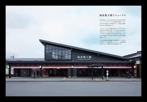 受賞コメント墨色を基調とし、品のある和の落ち着きを表現した駅舎のリニューアルデザイン。ガラス面、欄間など建築にみられる格子は、秩父の風景・文化が織り成すイメージを表現し、繊細で温かみのある空間を演出します。