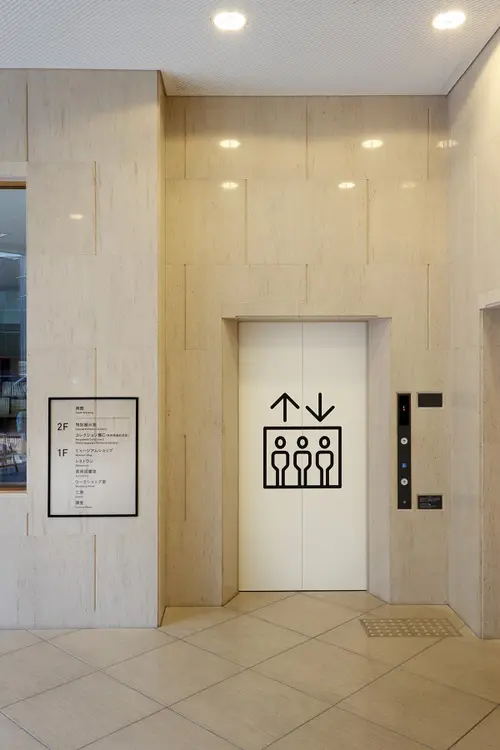 館内のサインは美術館らしく、額縁のようなフレームの中にサインを落とし込み、絵画を鑑賞する来館者にとって自然に目に入るデザインにしました。来館者の多くは年配の方も多く、増築によって複雑な動線の施設なので、遠くからでも認識できるデザインを意識しました。