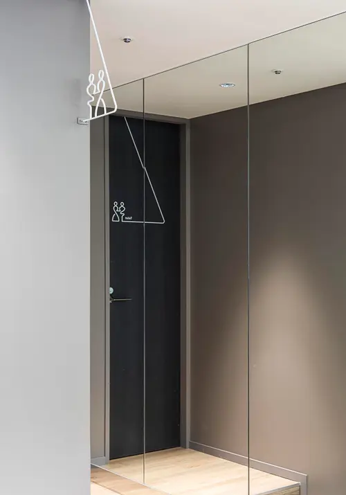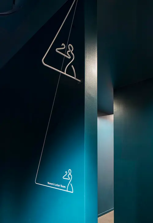 受賞コメントフィットネスジムLEALEA横浜東口店のサイン計画。ジム利用しているお客様に、天井を意識させるサインステムです。室名サインは、通路を歩いているとき、背筋が伸びるように、また精神的にも向上心が上がるように、上へと伸びていくサインです。ストレッチゾーンには、顔を上に向けたときに、ポジティブな言葉が目に入るよう天井にグラフィックを施しています。また、女性の会員が多いため、ピクトグラムもしなやかさを意識しています。