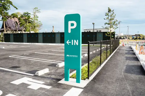 門脇町の「門」という漢字と、住民の皆様や公園にお越しいただく方々を迎え入れるエントランスとして「門」をイメージしたサインをデザインしました。