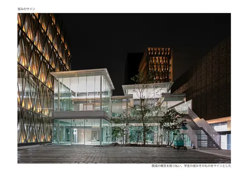 既成の概念を振り払い、学生の営みそのものが浮かび上がる教育環境をサインとして創造した。