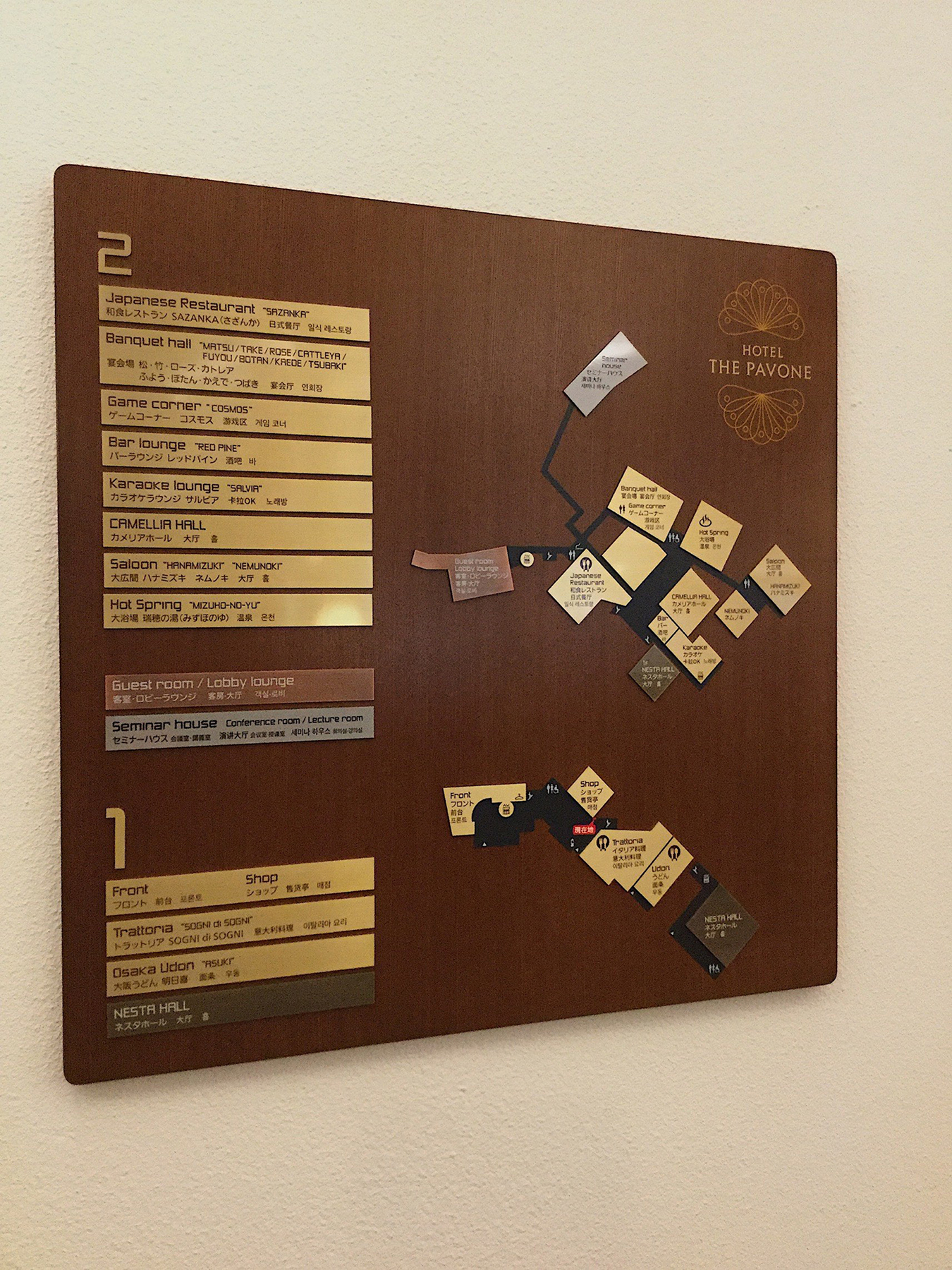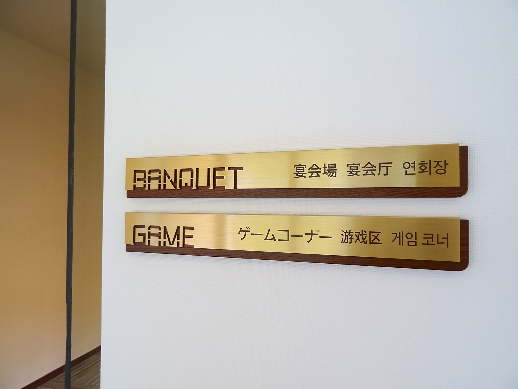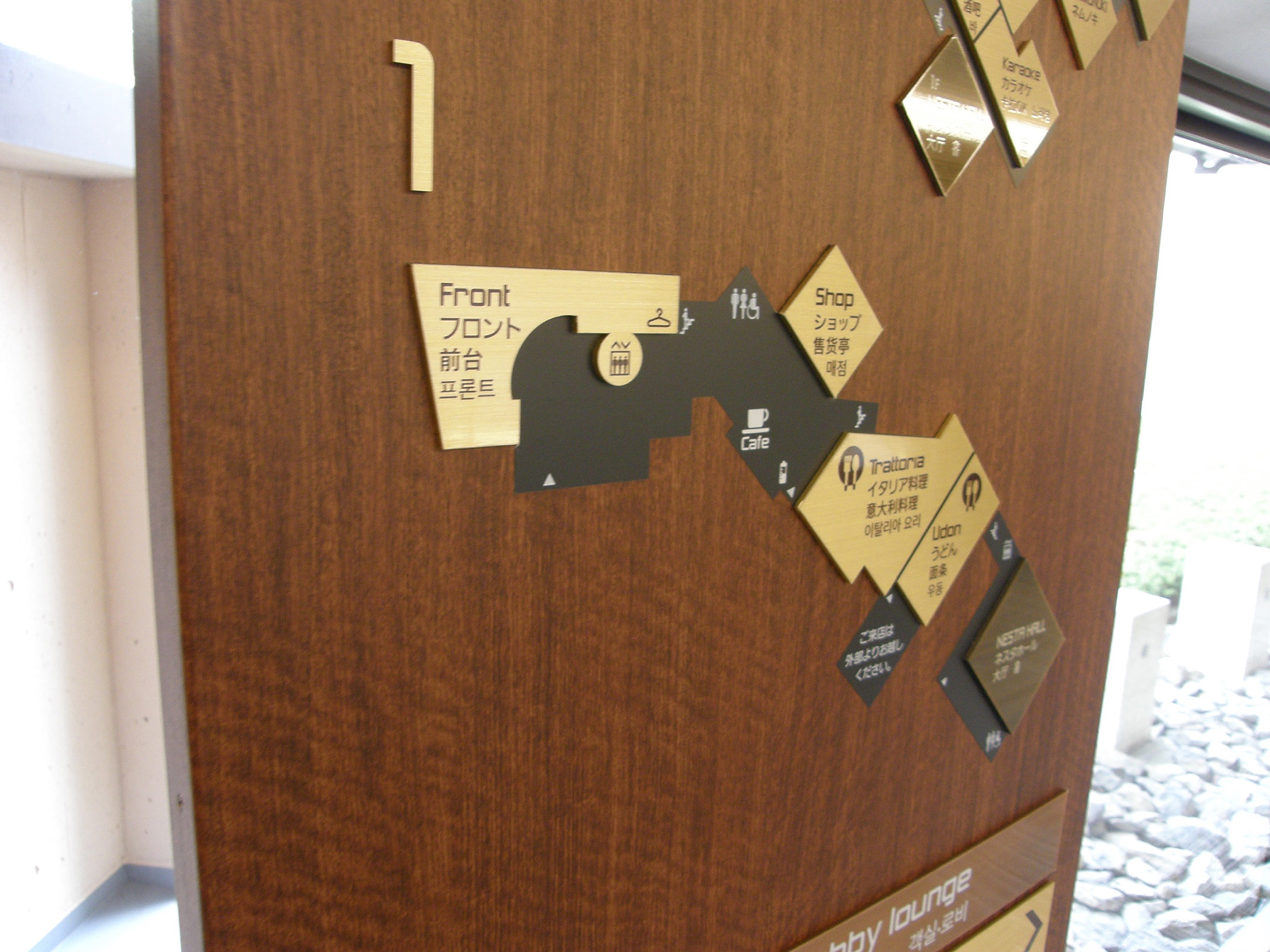 受賞コメント旧神戸グリンピア三木跡にリニューアルされた、総合レジャー施設「ネスタリゾート神戸」基幹ホテルのサイン計画。敷地が広大であり利用者の位置把握も困難なことから、点在する施設の位置関係が一目で分かるよう、大地から産出される金属のもつイメージでゾーン分けを行いました。サイン仕様を案内マップ、誘導、定点サインとリンクさせることで、今いるエリアを明確に分かりやすくするとともに、インテリアと調和したサイン計画を行いました。多目的ホールやレストラン、宴会場などの主要施設があるレクレーションエリアは、カジュアルで華やかさを感じさせる真鍮HL仕上。客室エリアは上質感と落ち着きのあるイメージとして銅ブロンズ仕上。大広間エリアは和のインテリアと調和する渋みのある真鍮硫化いぶし仕上。セミナーハウスはオフィシャルでニュートラルなイメージとして、ステンレスバイブレーション仕上の金属板を使用しています。また様々な国の訪問者にも対応できるよう、案内や誘導、施設名サインには英語を主とした四ヶ国語を併記しています。