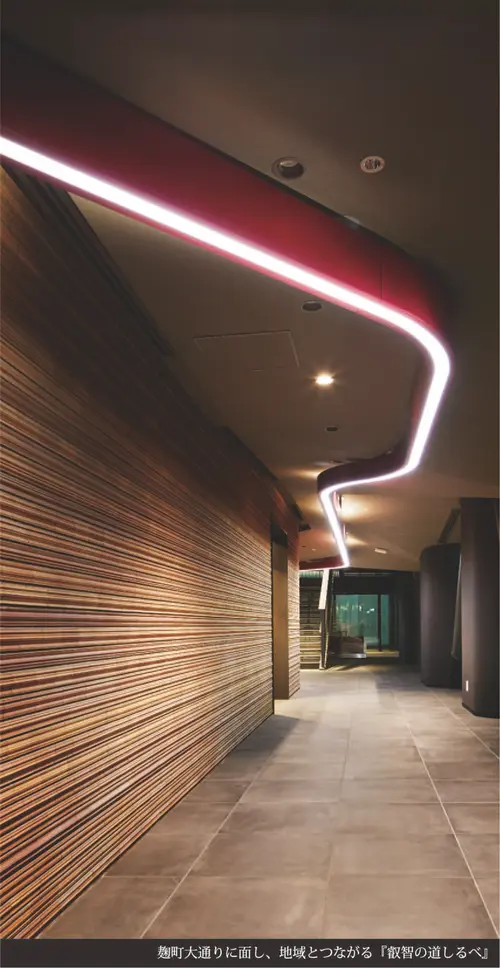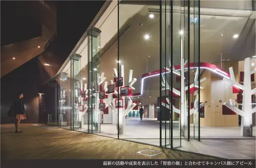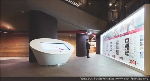 受賞コメントかっては大名屋敷の立ち並んだ歴史ある地域と大学キャンパスをつなぐとともに、上智学院の「過去(歴史)、今(現在)、未来」をつなぐ「道」として展示空間をデザイン、その誘導のためスクールカラーを帯びた『叡智の道しるべ』を頭上に設置した。コーナー名称、電子表示板、上智学院にまつわる言葉を掲示している。上智学院が地域の歴史ととも歩み、グローバルに、そして未来につながっていくことを象徴的に表現している。