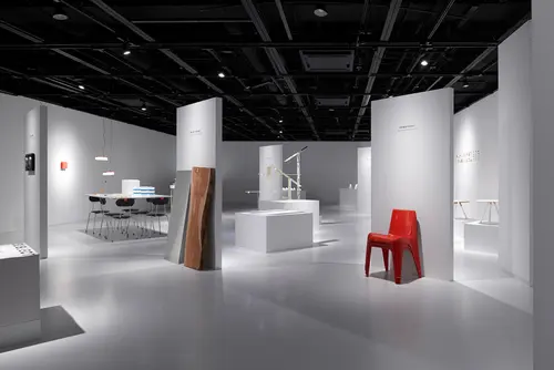 受賞コメントデザインスタジオ「TAKT PROJECT」の個展会場デザイン。ある枠組みを思索し、別の可能性につながる主題を"SUBJECT"と呼び、それを知覚するために具現化した物を "OBJECT"と呼ぶ、自主研究プロジェクトを「SUBJECT ⇌ OBJECT」というキーワードに沿って展示を行った。 会場では7つの壁が配置され、表側(入口側)を"SUBJECT"、裏側を"OBJECT"とし、それぞれのプロジェクトが語られる。 "SUBJECT"では主題となる問やキーワードと共に、象徴的な製品や物を展示し、"OBJECT"では具現化された自主研究作品が並んでいる。それぞれの壁は入口に正対して 配置あれ、来場者に語りかける。一方空間に対しては45°に振られて設置されるため、垣根なく混ざり合うように展示されているように見える。 あるプロジェクトの"OBJECT"を見ると同時に次の"OBJECT"が目に入ってくる。来場者は気になったプロジェクトの「SUBJECT ⇌ OBJECT」を答合わせのように、 回遊しながらじっくりと見ることができる。