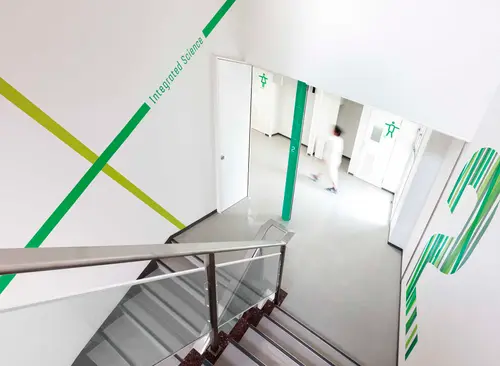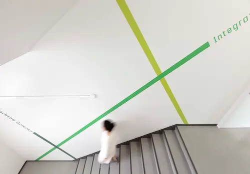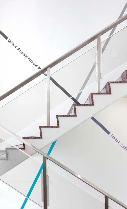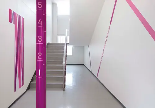 「メージャー」と呼ばれる専攻は、フロア階ごとに分けられており、階数を表す数字は、メージャーカラーを中心に「線の集合」で表現しました。