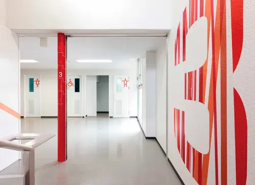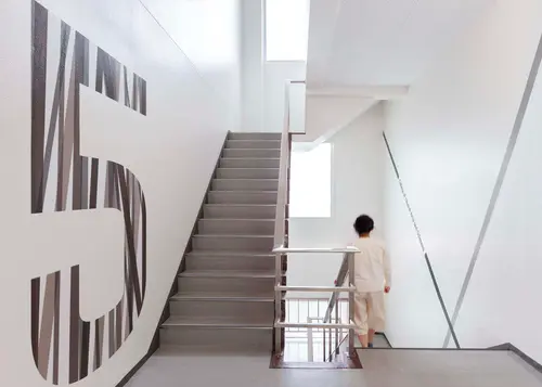 新学部の拠点は、従来型の重暗いエントランスを備えた既存建物であったため、新学部の空気感、清新さに乏しく、高揚した意欲と活力に相応しいものではありませんでした。このサインプロジェクトには、新しい価値観を育む新学部のための新鮮な空間作りが求められました。