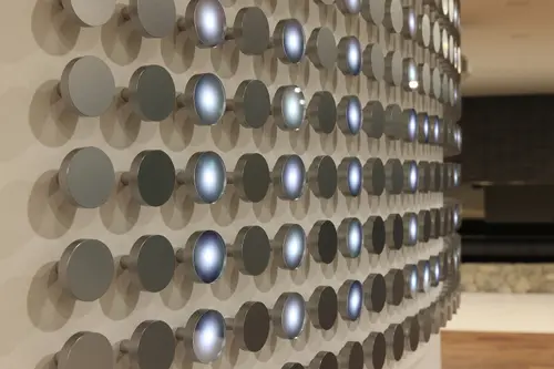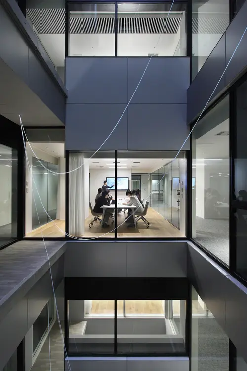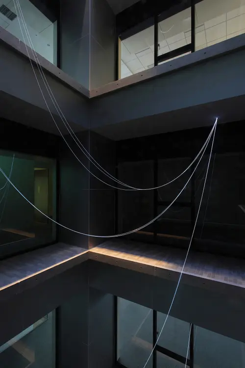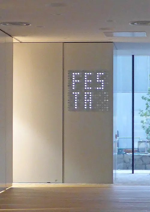 受賞コメント日本の通信を支えるNTT西日本における事務所ビルのサイン計画。「つなげることの原点」をキーワードに、電話交換機やとう道(通信ケーブルの管路トンネル)をとおる通信線、光回線の光ファイバーなどを連想させるサイン計画を実施。誰かに何かを伝えるという、サイン本来の目的と呼応させる、通信会社ならではのデザインである。