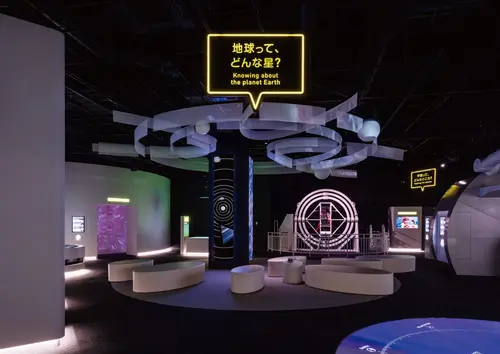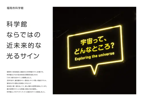 科学館ならではの近未来的な雰囲気を感じさせる「ネオン風の光るサイン」を展開しました。