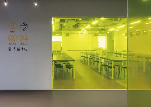展示空間のサインにも同様に黄色の光を使用し、科学館としてのアイデンティティを高めるサインを目指しました。