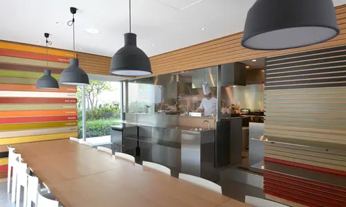 受賞コメントムスリムとベジタリアンのためのエスニック料理のレストランである。パッシブキッチンとは自然の力を取り入れる、といった意味を持つ。エスニック料理に不可欠で、自然の恵みである「スパイス」をコンセプトとし、さまざまなスパイスの色彩と名称をモチーフとして、食文化の理解を深める場にふさわしく、シンプルで明るいデザインとした。インテリアでは、内装はもちろん、家具什器、サイン、小物に至るまで、あえて具象を用いず、色彩を中心とした抽象表現で空間全体を統一している。