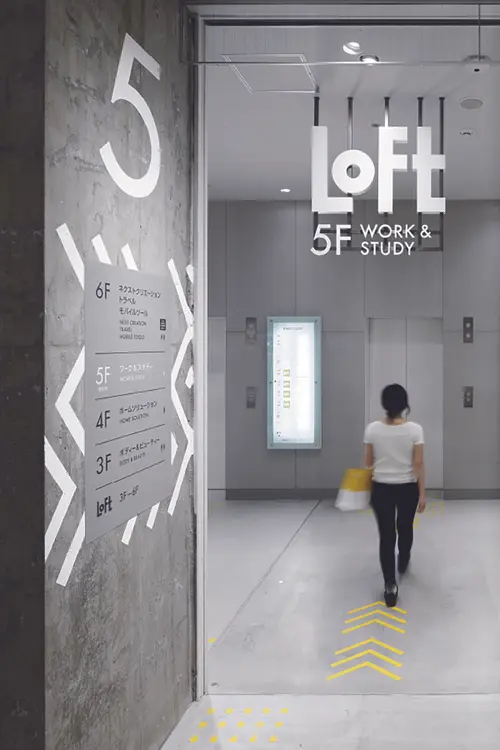 受賞コメント銀座にオープンしたロフトの新しいフラッグシップストア「銀座ロフト」の店舗環境計画。洗練された美意識を持つ顧客が訪れる街にふさわしい店舗を実現しながら、ロフトのアイデンティティを新しく発信する場所として、ダイナミックさと新鮮さを持つ環境のサイン計画を目指した。壁面や躯体現しのまま仕上げられた柱にはペイントサインが設置され、機能的でありながら生き生きとした空間を演出している。また、床面には店内を回遊する楽しさを引き立たせるように、道路サインをモチーフにしたサイン設置。剥き出しの荒々しさと軽やかさ、洗練された雰囲気を併せ持つ銀座ロフト固有の空間を作り出している。