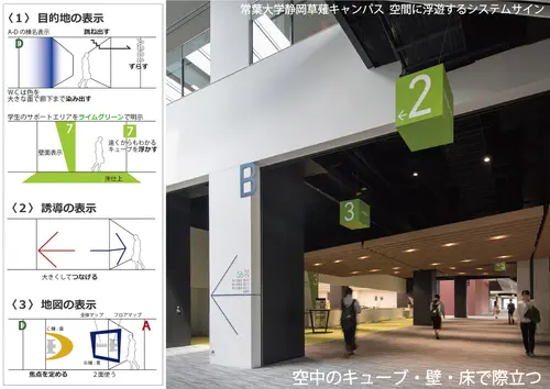 常葉大学静岡草薙キャンパス 空間に浮遊するシステムサイン