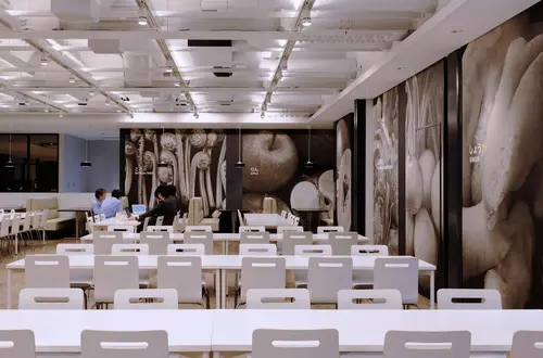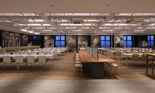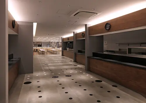 健康経営という概念のもと、デザインを通じて社員の心身の健康に寄与できる社員食堂を目指した。