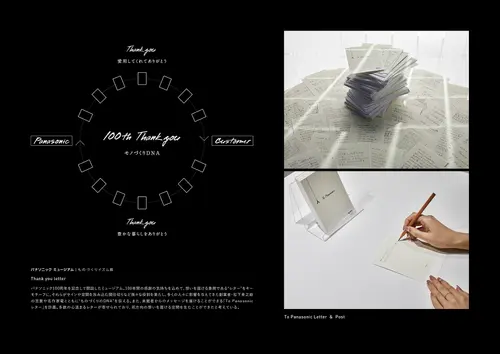 受賞コメント100周年記念のミュージアム。100年間の感謝の気持ちを込め、想いを届ける“レター”をキーモチーフに。様々なツールとなり“ものづくりのDNA”を伝え、これらが連なることで空間を包み込む。来館者からの声を届けるレターも計画。心温まる声が多数寄せられており、双方向のコミュニケーションを生む空間となった。