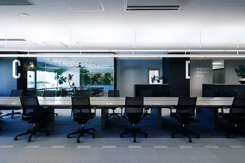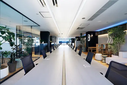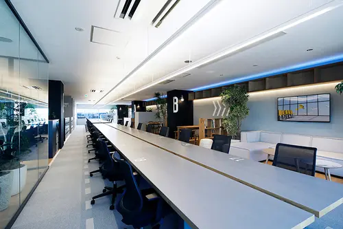 受賞コメント不動産会社のプロジェクト準備室。自社の成り立ちやこれからのプロジェクトの発信拠点としてコンセプトはTACHIHI AIRPORTとした。敢えてワークスペースを細長く計画し、滑走路に見立てた大テーブル(RUNWAY TABLE)を設置。夜には窓に反射してテーブルはその先へ続き、この場での活動が飛び立っていく様を表現。SKY DECKや朝昼夜と時間によって変化する照明など空気を感じる要素を落とし込み、さらに空港らしいスケール感のサイネージを取り入れた。