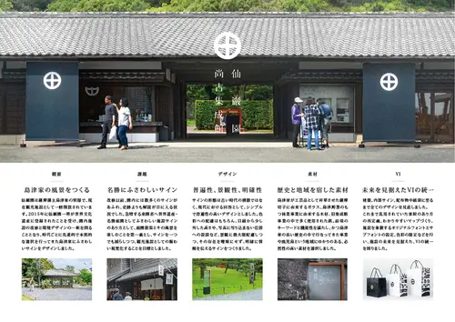 受賞コメント仙巌園は1658年に築かれた薩摩藩主島津家の別邸です。2015年に仙巌園一帯が世界文化遺産に登録されたことを受け、園内施設の改修と環境デザインの一新を図ることとなり、時代ごとに先進的で本質的な選択を行ってきた島津家にふさわしいサインをデザインしました。庭園散策とその風景を楽しむことを第一義とし、風景を阻害しない品格のあるサインに加え、建築、内部サイン、配布物や紙袋に至るまで全てのデザインを見直し、VIの統一を図りました。