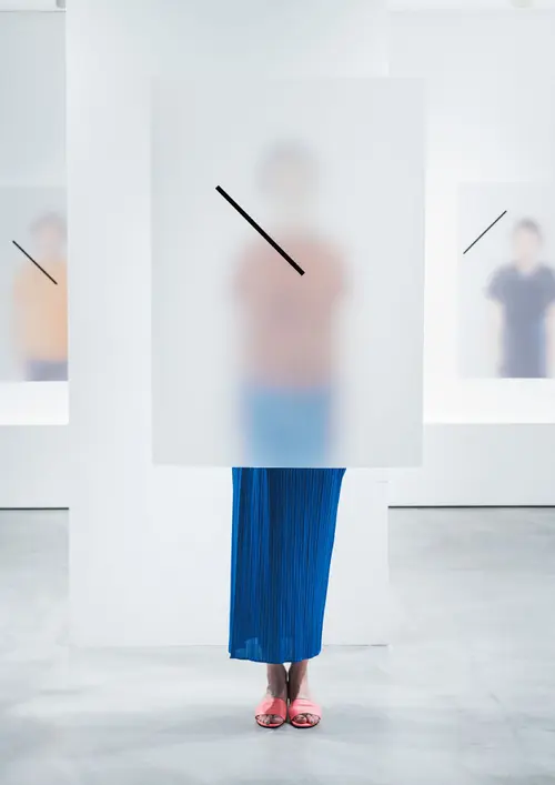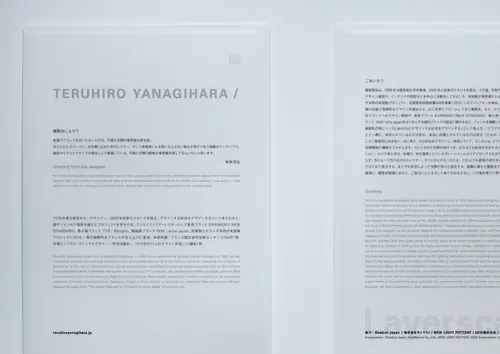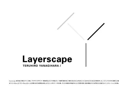 受賞コメントLayerscape展の展示空間とサイン計画。プロダクトデザイナー柳原照弘とのコラボ展示で、半透明の紙の向こう側にあたかも人が存在しているかのように見える空間を作った。ビジュアルの中に配置した線は「ここ=Here」と「そこ=There』といった空間における時間を表現しようとシンボルマークを分解。そこに来場者が参加することで空間・時間・人間の関係に生じる『間(ま)』を感じるインスタレーションを計画。