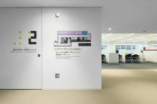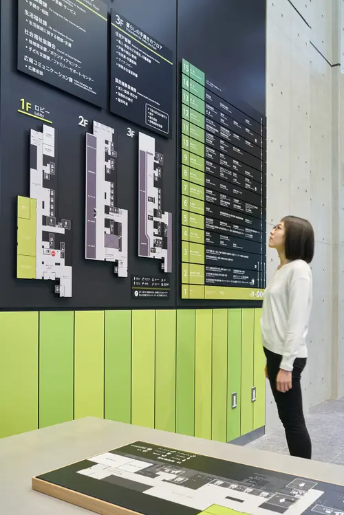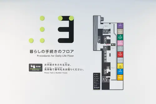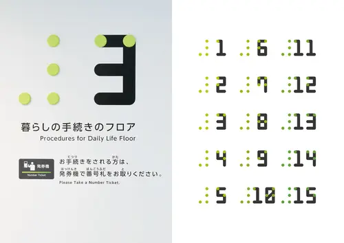 受賞コメント・階ごとの内装カラーを表現した案内サイン ・窓口ごとにカラー分けしたフロアマップ ・色で性別を表現しないトイレサイン ・渋谷らしさあふれるシブヤフォント ・目でも読める点字ブレイルノイエ 渋谷区ではダイバーシティとインクルージョンという考え方を大切にしている。 多様性(ダイバーシティ)のあるサインで構成し、 ちからに変える(インクルージョン)ことにより、 常に時代の最先端を行く街「渋谷」らしいデザインとした。