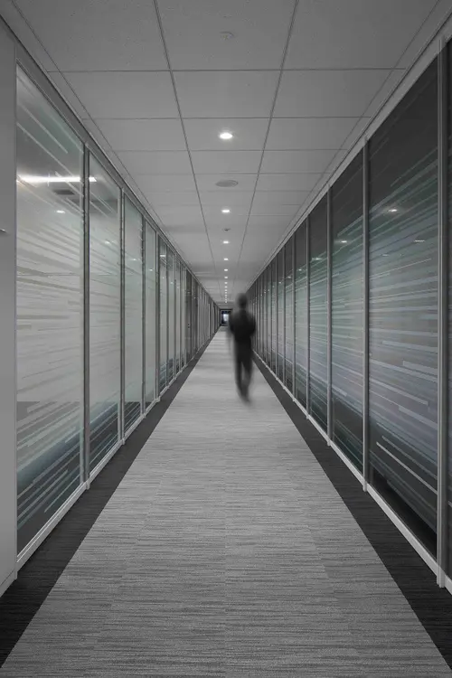 基準階に上がると平行に配置された2本の廊下での移動となる。