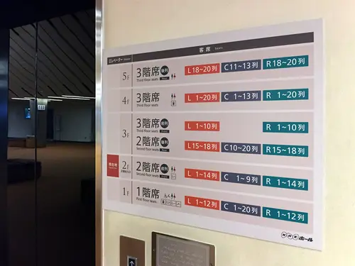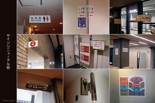 受賞コメントNHKホールは1973年のホール完成後より数回にわたり内装工事や各種サインの追加が行われ、煩雑した空間となっていた。また客席階表示とフロア階表示が混同しており、人的誘導が必要な状態であった。