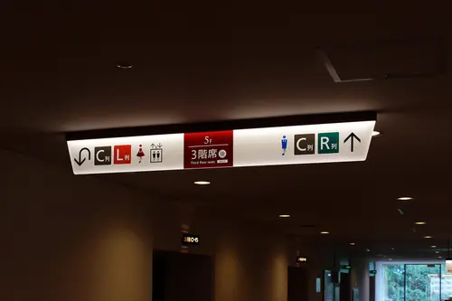 まず、サインデザインの統一によりホールの一体感を、次に、階表示のしくみを構築することにより客席階とフロア階の関係を明確にした。サイン設置個所を整理し階層を再構築したことにより、空間の統制を図ることができた。加えて、モックアップで確認しながらサインの設置個所数を絞り込んだことで、コスト面の抑制も行うことができた。