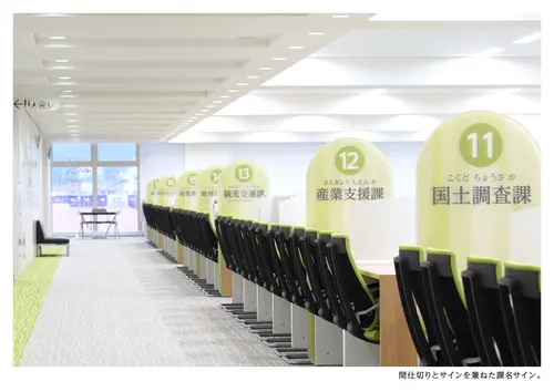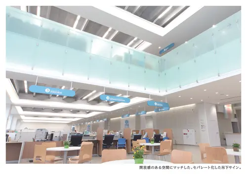 折り紙のイメージから平和の象徴で親しみのあるアイコン「鶴」と、親しい方に贈答される特産品の「水引」をモチーフにしたサイングラフィック。