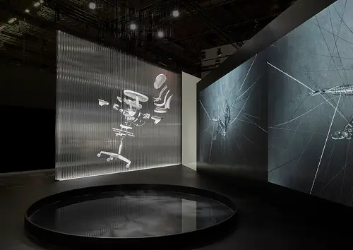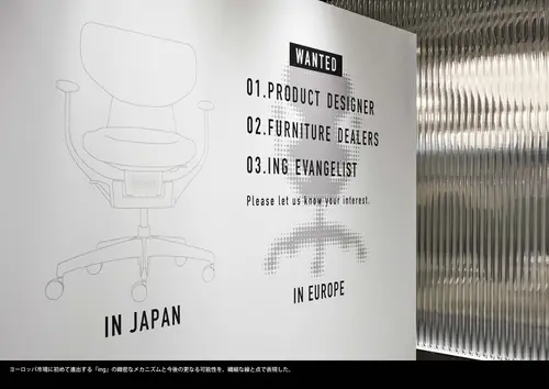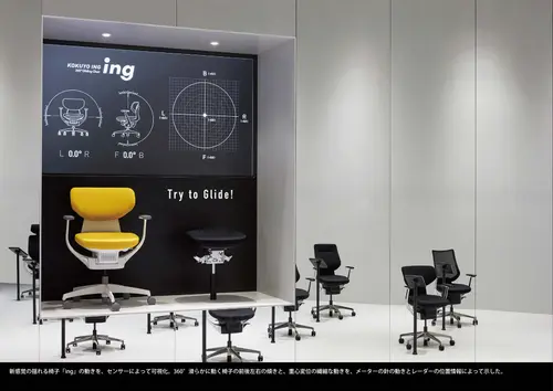受賞コメント新感覚の揺れる椅子「ing」の為の展示ブース。ばらばらに分解した白い椅子は時が止まったように空中に浮かび上がり、ダイナミックな映像は緻密なメカニズムと滑らかな動きを表現する。白黒反転した次のエリアでは整然と並ぶ椅子が期待感を煽り、揺れを可視化するICTツールが正確な理解を与える。唯一無二の動きを伝える為に「座る」という行為にフォーカスし、そこに至るまでの体験を「静と動」の対比によってデザインした。