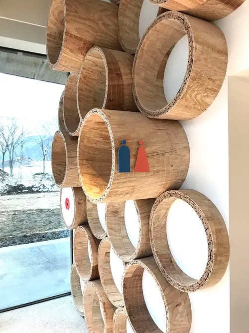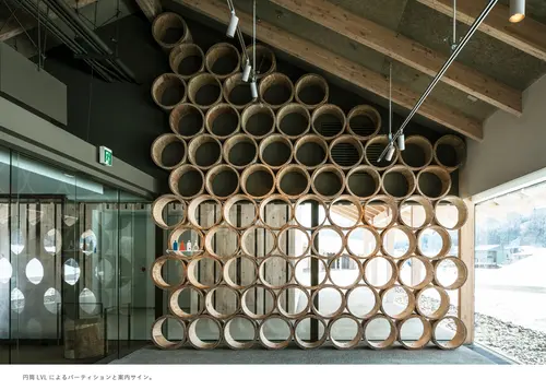 受賞コメント計画建物で使われている円筒LVLという木の薄い板を輪っか状に加工した新素材をモチーフに、