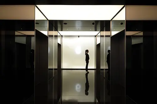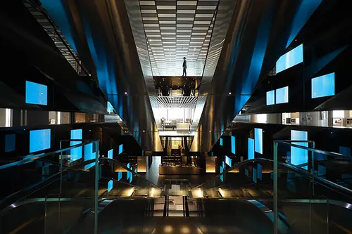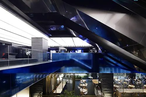 各ショールーム階をつなぐESC壁面の「流れる水の光」、ショールームの「静寂な池の光」を表現しました。
