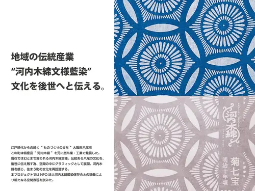 空間の中にグラフィックとして展開。河内木綿を感じ、住まう町の文化を再認識する。