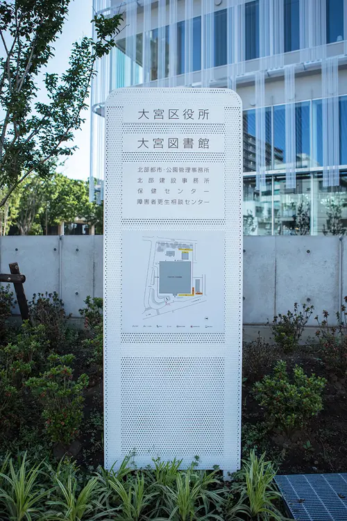 受賞コメント大宮区役所・大宮図書館は2つの公共の機能を持った市民にとって身近な公共施設である。周辺の自然環境や空間、素材などの多様な場所に寄り添う手法で視覚的に表現し、多様な市民生活への親和性を直感できるようなサインデザインを意図した。デザインや素材は場所に応じて、切り文字・グラデーション着色や多孔質な材料を用いて表現を工夫することで、緑豊かな氷川参道の風景や建築に自然となじむサインをめざした。