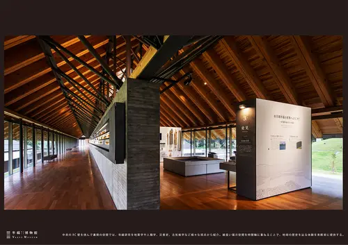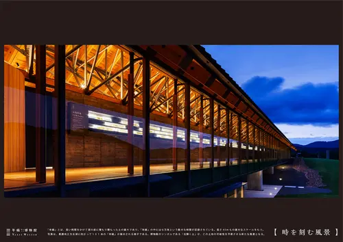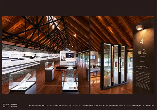 年縞という、長い時間をかけて湖の底などに積もり積もった土の縞々を展示する施設です。「年縞」の中には七万年という膨大な時間が記録されています。余計な装飾や過度な情報を与えることなくシンプルに展示することで展示物自体が持つ魅力を最大限に強調し、空間全体・施設全体に広がるビジュアルを創出しました。博物館のシンボルである「光輝く土」が、この土地の可能性を予感させる新たな風景となります。