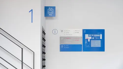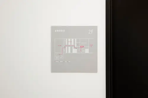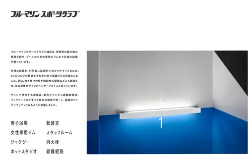 サインで使用する書体は、案内サインから避難経路図、バックヤードまですべて長体の書体で統一し、施設のアイデンティティとなるように計画しました。