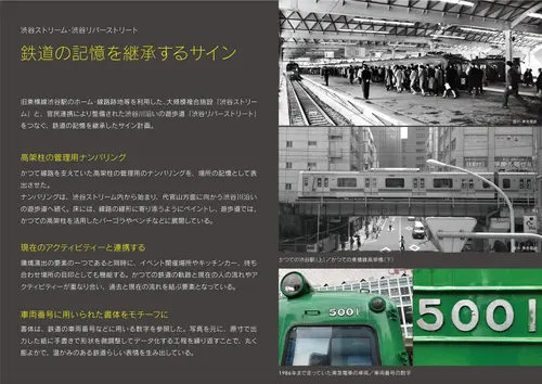 受賞コメント旧東横線渋谷駅のホーム・線路跡地等を利用した、大規模複合施設「渋谷ストリーム」と、渋谷川沿いの遊歩道「渋谷リバーストリート」の鉄道の記憶を活かしたサイン計画。