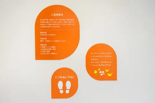 吹き出しの形をモチーフにしたサイン計画を展開しました。
