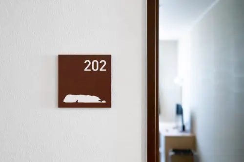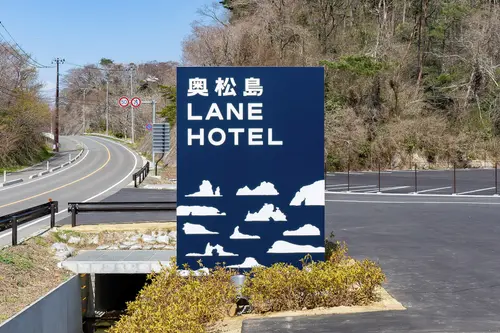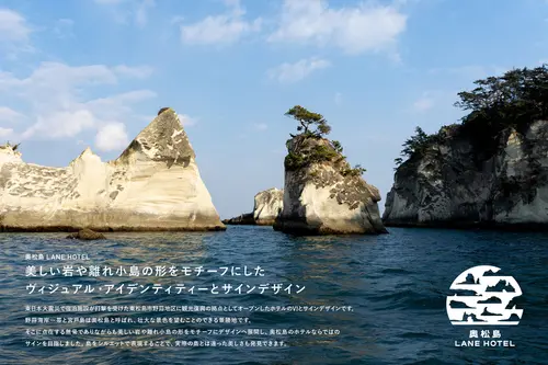 奥松島のホテルならではのサインを目指しました。島をシルエットで表現することで、