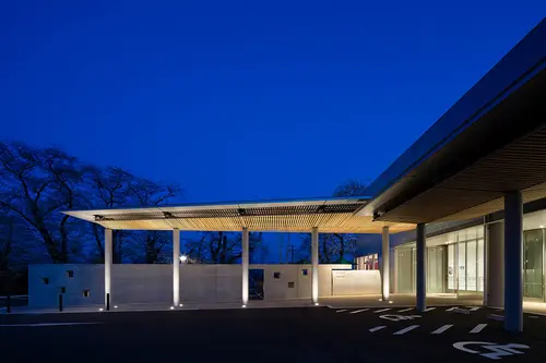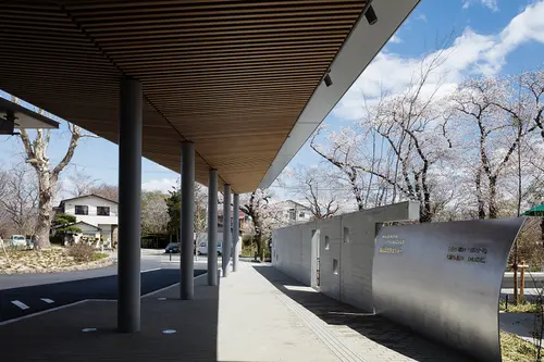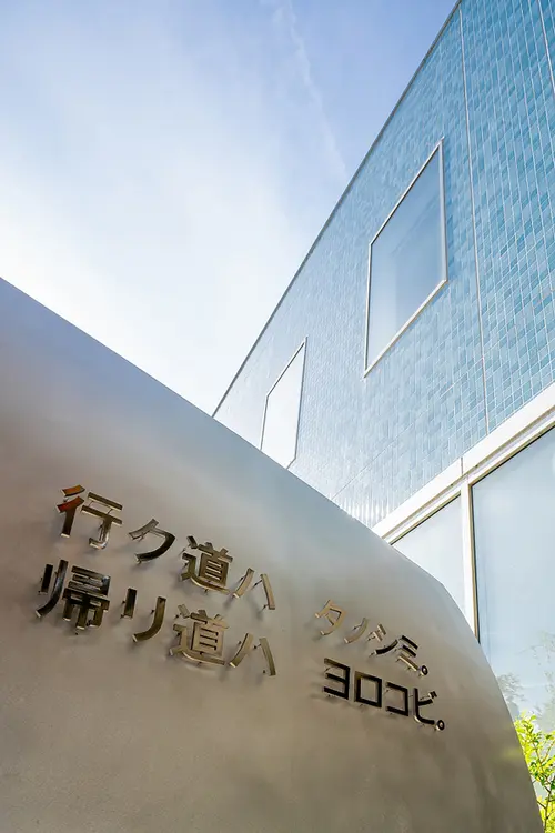 受賞コメント造船技術を継承する金属加工技術による館銘板。曲率を変えながら曲げ加工したアルミ厚板に、逆光に輝いて見えるようにアクリル系樹脂を充填した館の名称。「沼」「図」のように切り抜くとバラバラになる文字も、周囲に留める補助材なしに仕上げている。「図書館…」と「児童館」の樹脂注入は表裏逆、光の溜まり方の違いを楽しめる。糸井重里氏の言葉を、半世紀前の石碑に関連させ、切り抜き文字を浮かして時の長さを強調している。