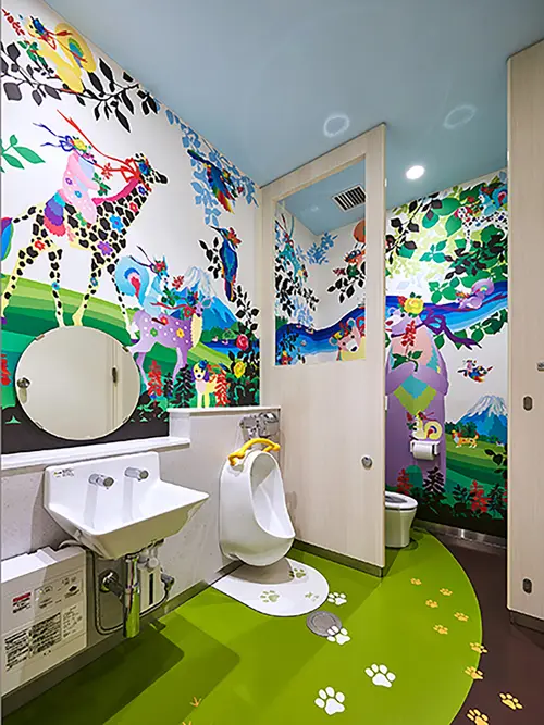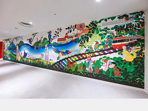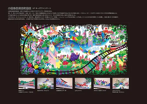受賞コメント「親・子・孫の3世代で育む幸せの絆」をコンセプトに、相互に共通環境を取り入れることで自然にフロアを回遊できるようなフロア設計に加え、幅広い世代に支持されるイラストレーター・ホラグチ カヨ氏によるイラストを起用し、天井や壁面、柱上に、その色鮮やかな世界観を展開した。地域に暮らす3世代顧客が、百貨店を訪れる本来の目的以外にも、この場所で過ごす時間そのものが楽しくなるような空間を創出した。