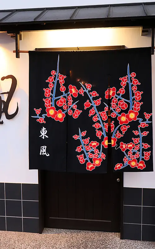 受賞コメント菅原道真の「東風(こち)吹かば匂(にほ)ひおこせよ梅の花主(あるじ)なしとて春を忘るな」とあるように、東風(こち)は春を告げる風として、知られています。今回のれんを新しくするに当たり、「東風」を表すものとして梅の花を選びました。さわやかな春の風がお店に吹き、来店するお客様にもその梅が香るように願いを込めて、伝統技術である「讃岐のり染」の技法を使い手染めしてあります。
