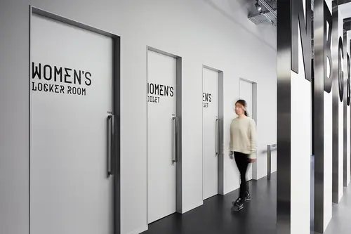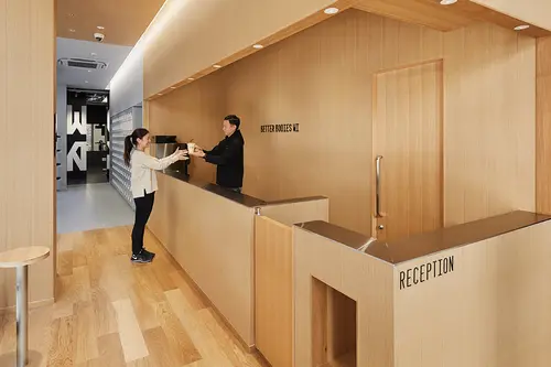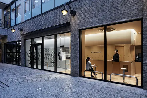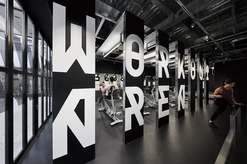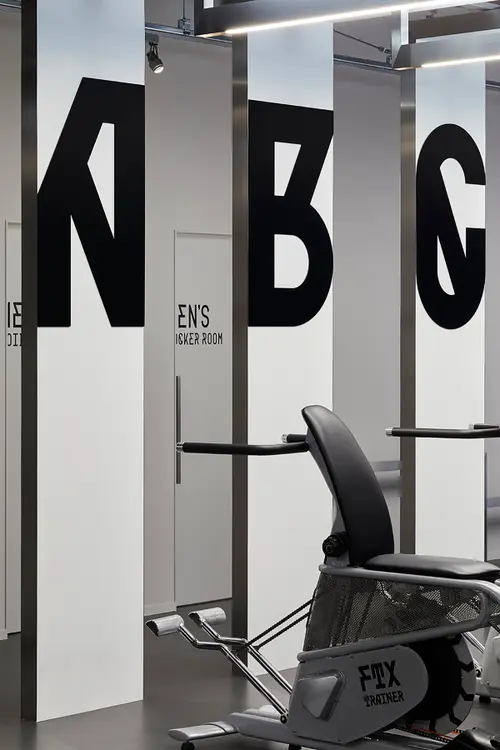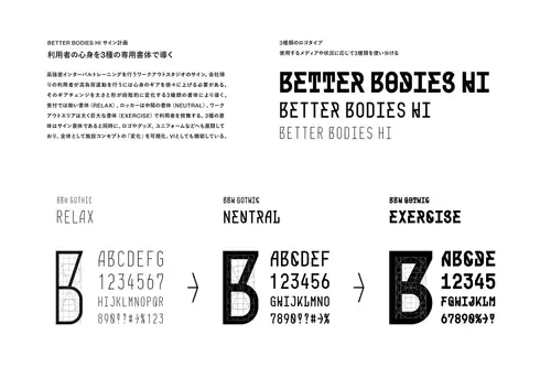 受賞コメント高強度インターバルトレーニングを行うワークアウトスタジオ「BETTER BODIES HI」のサイン計画。会社帰りの利用者が高負荷運動を行うには心身のギアを徐々に上げる必要がある。その心身のギアチェンジを太さと形が段階的に変化する3種類の書体により導く。受付では細い書体(RELAX)、ロッカーは中間の書体(NEUTRAL)、ワークアウトエリアは太く巨大な書体(EXERCISE)で利用者を鼓舞する。3種の書体はサイン書体であると同時に、ロゴやグッズ、ユニフォームなどへも展開しており、全体として施設コンセプトの「変化」を可視化、VIとしても機能している。