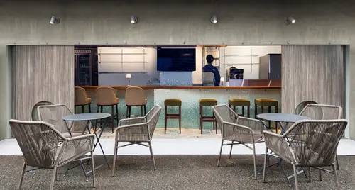 そこに「Cocoon」で創業より使用されてきたカウンターを移設し、店舗のどこからでも入ることが出来るために設置する引き戸に新たなデザインを試みた。