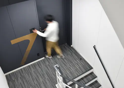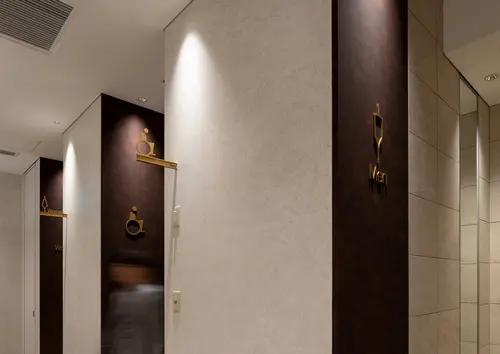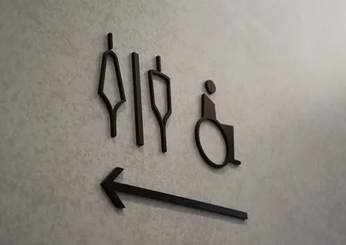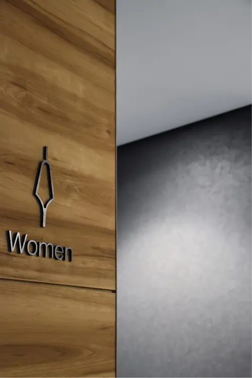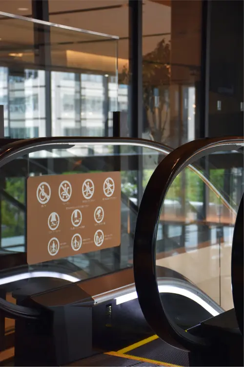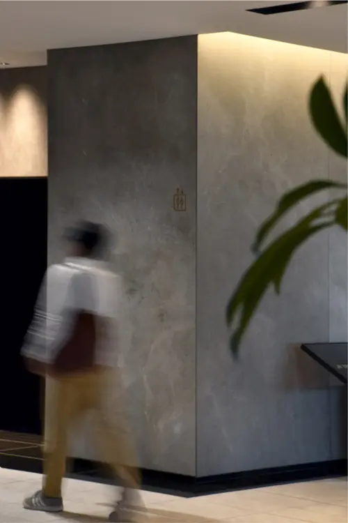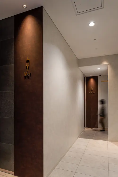 異なる用途や様々な過ごし方が混在する空間で、中立的に人々を誘う道標としてのサインをデザインする。